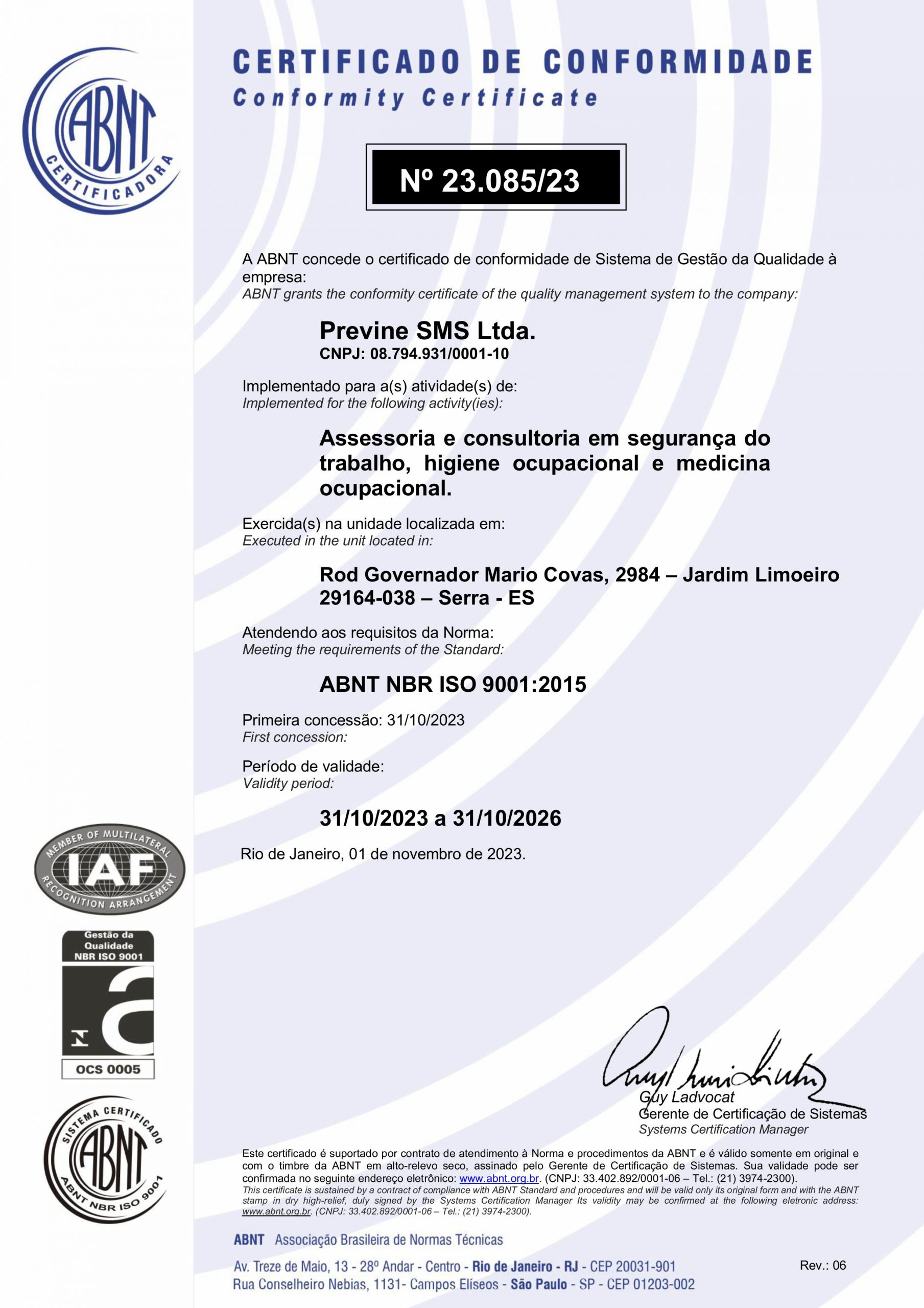 Previne Group was created in 2007 with the aim of providing the best services in the area of Health, Environment and Occupational Safety. The company came up with the idea of providing services in a differentiated way, with total quality and personalized service, integrating the processes and promoting the quality of life to its clients, because we believe that the needs of our clients are our priorities.